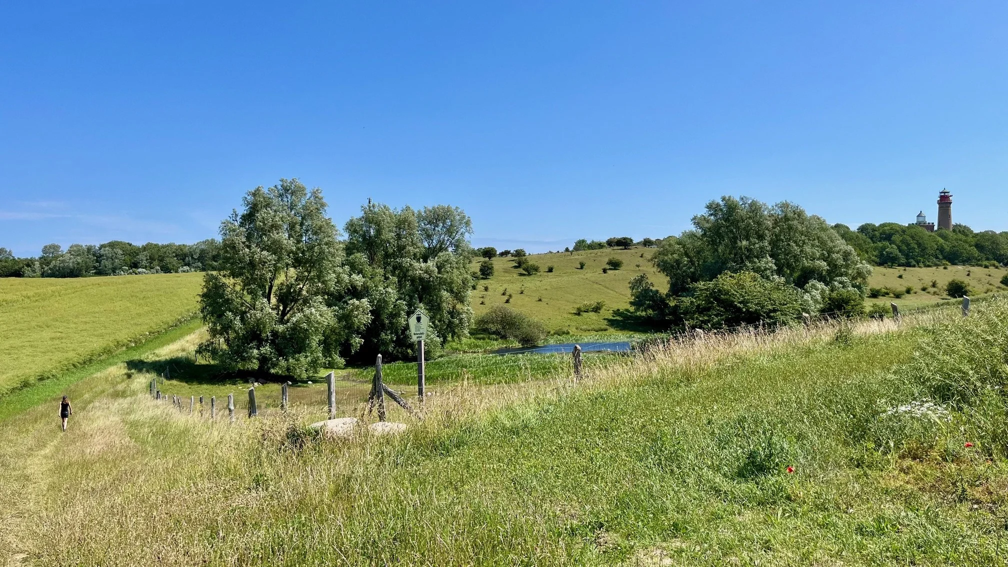 Náš první výlet vede ke dvěma majákům postaveným na mysu Arkona. Nejdřív nás překvapí, že se nedá dojet až přímo k nim, že musíme zaparkovat (a zaplatit parkovné) na velkém parkovišti dva kilometry od nich, ale pak tento postup oceníme. Ty dva kilometry jsou příjemná procházka zemědělskou krajinou, kdy se nám siluety majáků postupně přibližují. Pod majáky necháme děti rozhodnout, jak chtějí za 3 Eura vystoupat nahoru na maják nebo si koupit zmrzlinu. Rozhodování jim zabere asi tak 2 sekundy a po točitých schodech na maják vystoupáme ve dvou. Nahoře je krásné červené zábradlí, výhled do dáli a hlavně silný vítr.