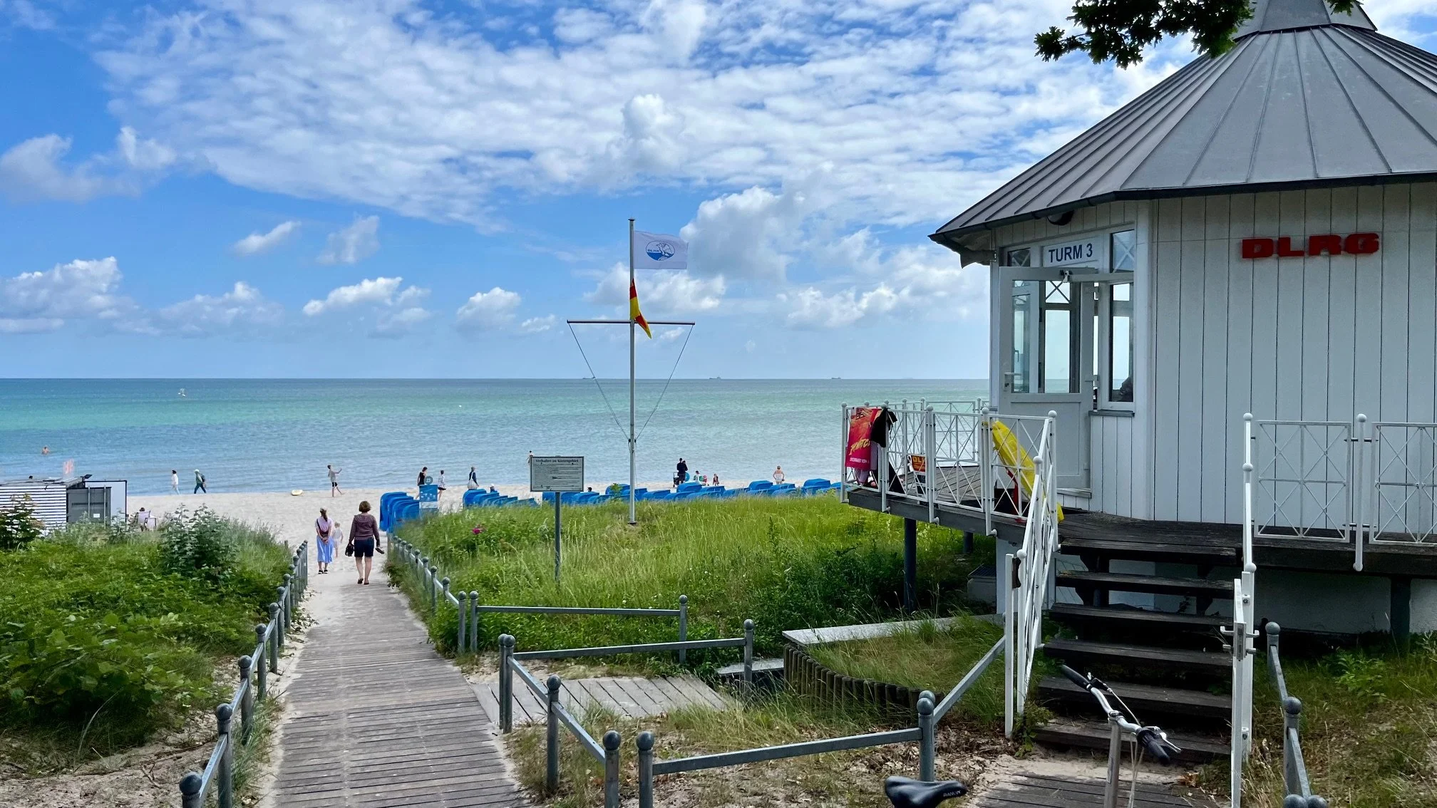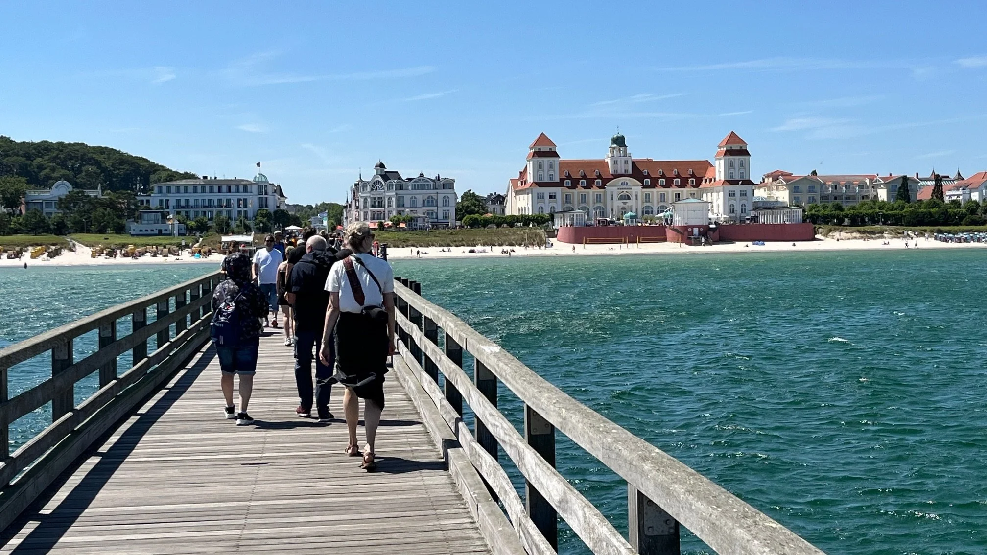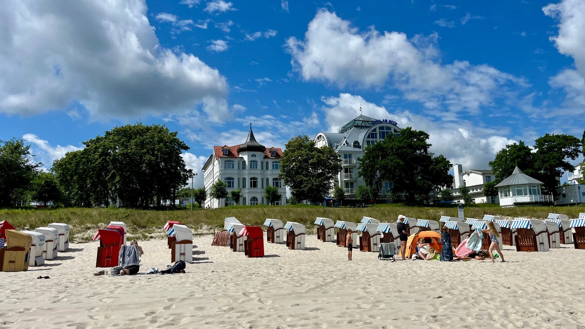 Čeká nás poslední den na Rujáně, plochém ostrově, kde pořád více či méně fouká. Dopoledne si užijeme na pláži v přímořské letovisku Binz. Několik kilometrů dlouhou pláž s jemný světlým pískem lemují vysoké borovice, za kterými stojí dlouhá řada honosných dvou a třípatrových vil. Všechny jsou bílé a zdobí je dřevěné balkóny, terasy a štíty. Přirovnala bych je ke stavbám od architekta Jurkoviče, jen v čistě bílém provedení.