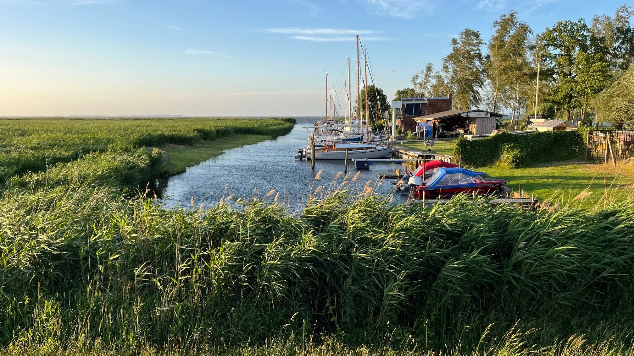 Po večeři je venku nejkrásnější světlo. Chtěla bych vyfotit lodě v přístavu, ale fouká tak, že mám pocit, že mi sfoukne stativ. Ani cvičit se mi v tom větru nechce. Jen Kuba kope jámu na maličké písečné pláži.