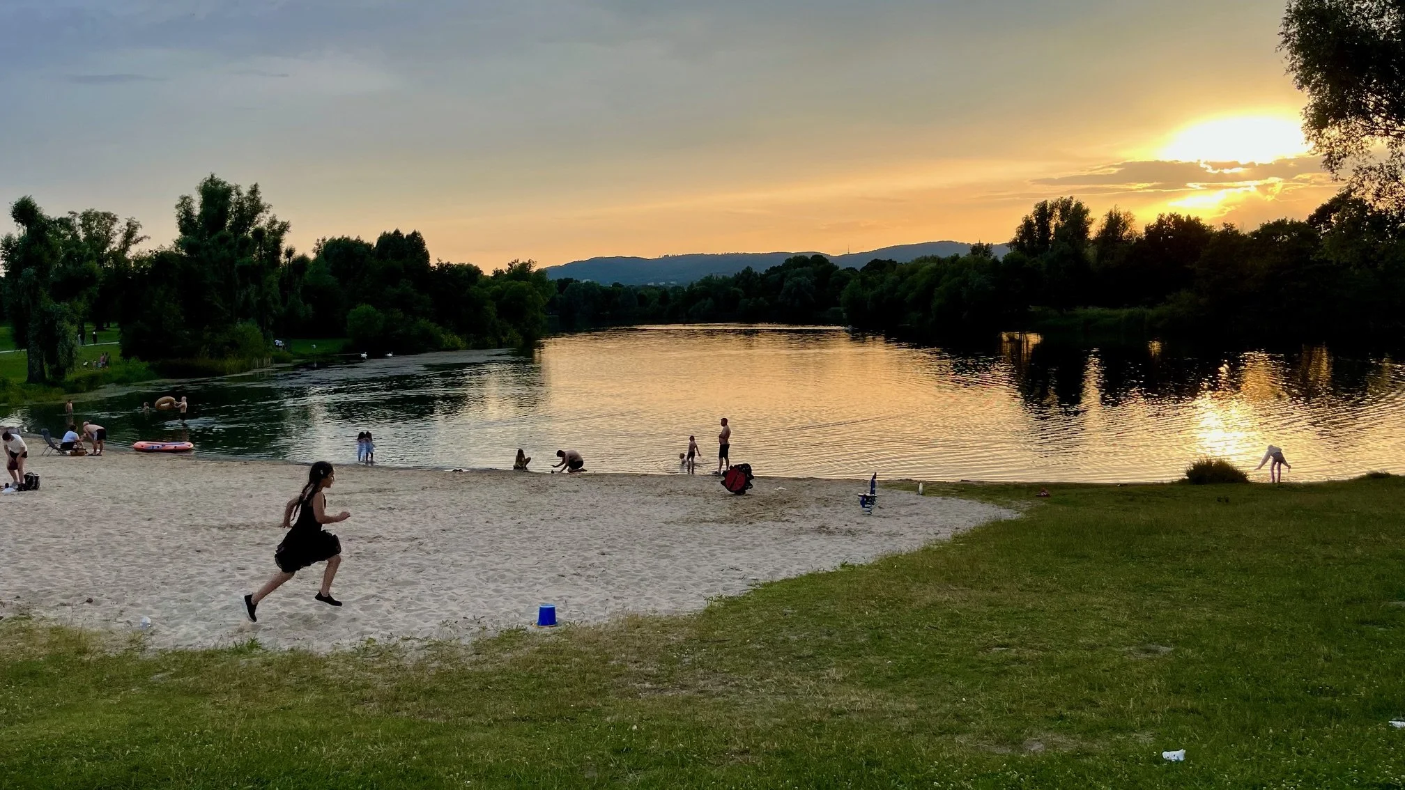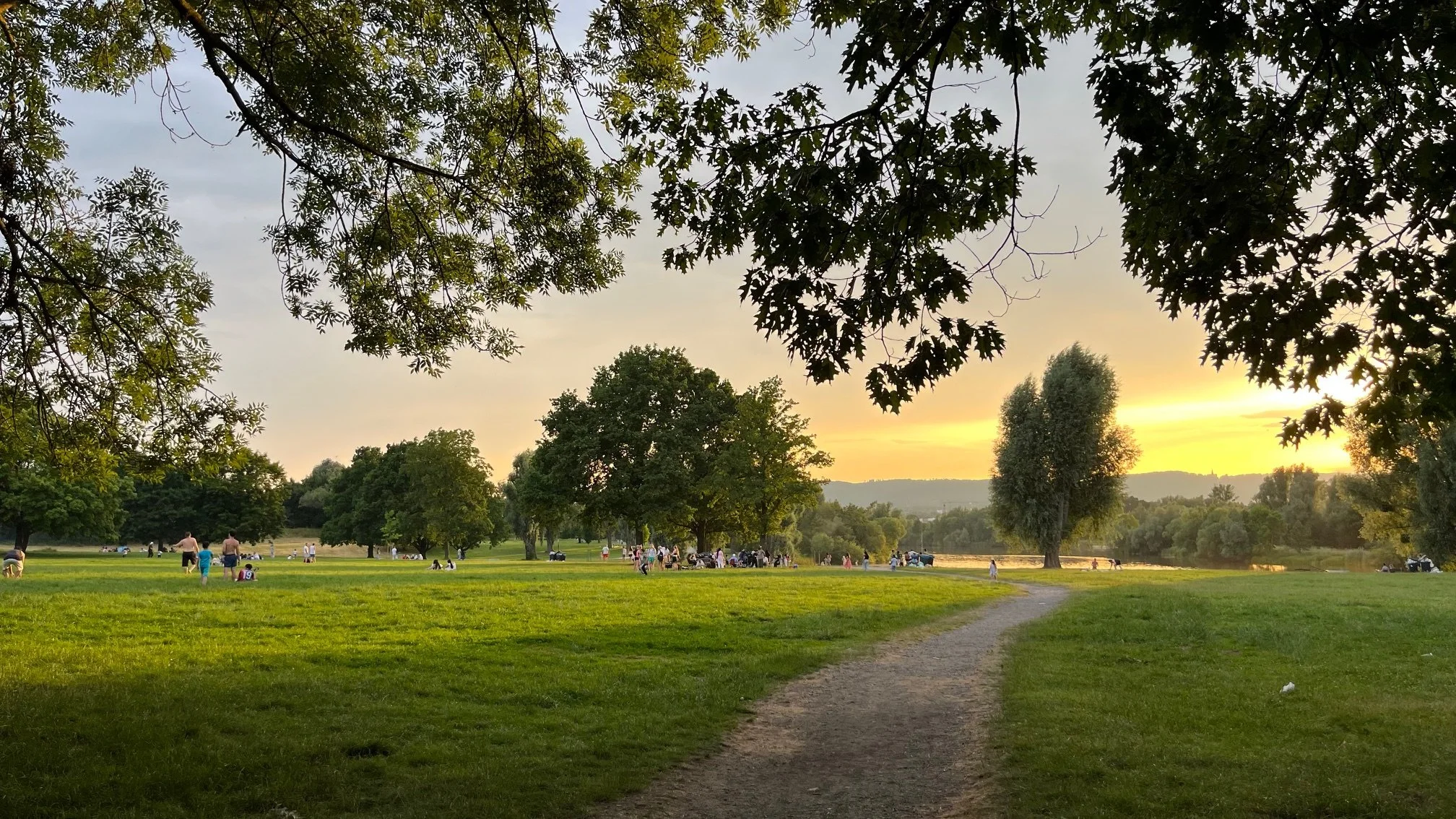 Přespíme na parkovišti u rekreační oblasti podél řeky Fuldy. Když tam dorazíme, je ještě stále hodně teplo. Park je plný přistěhovaleckých rodin, které si donesli židličky a sedí v menších či větších skupinách a baví se. Grilují, povídají si, děti si hrají na trávě kolem. Se západem slunce se oblast vylidní, v parku zbydou jen přeplněné popelnice a žhavý popel v betonových skružích.