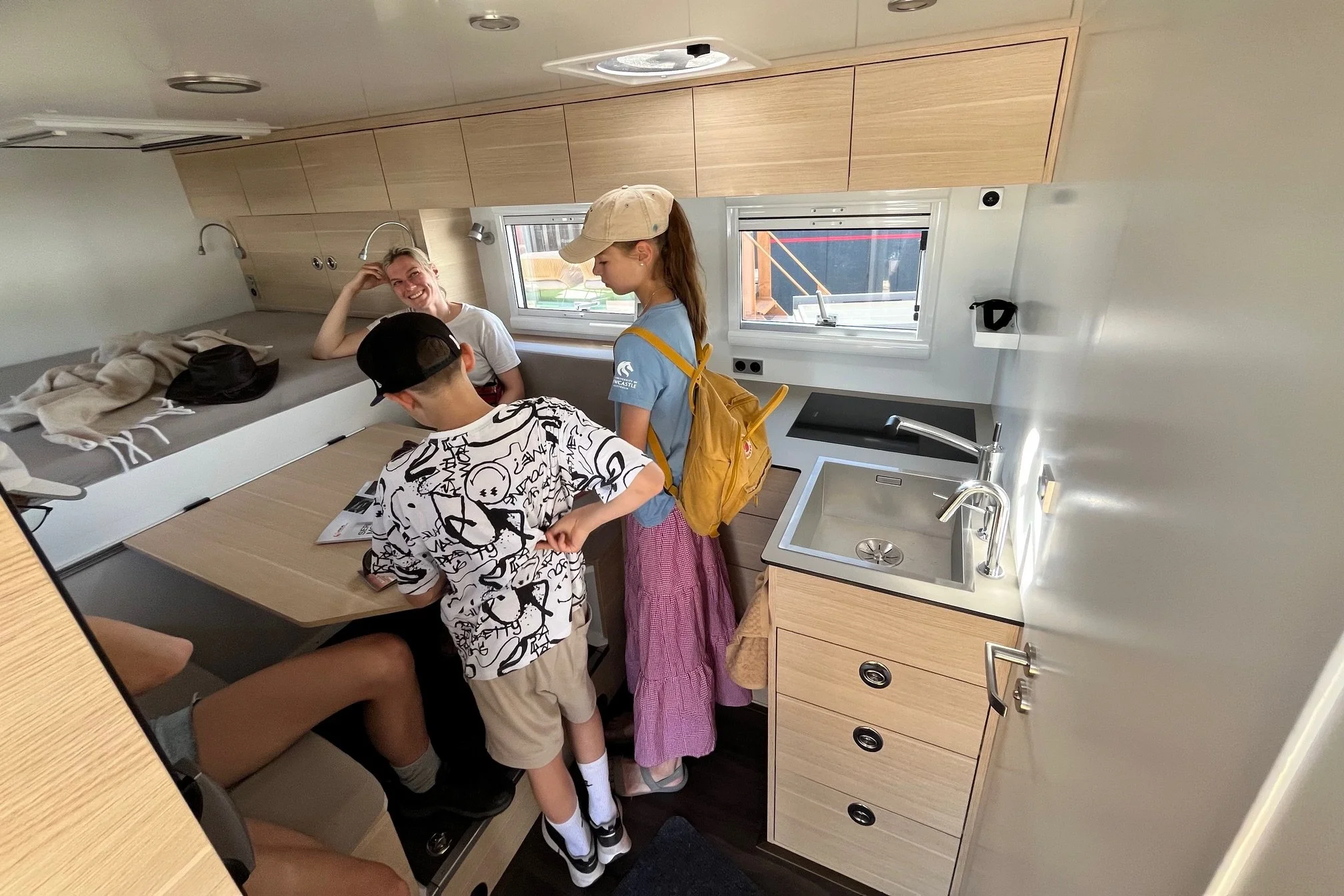 Tam je Janek ve svém živlu. Celé dopoledne obcházíme výstaviště a prohlížíme se naživo různé typy obytných nástaveb. Po obědě v obřím stanu si ještě prohlédneme auta od jedné společnosti a pak se rozdělíme. Janek zůstane, já vezmu děti na koupaliště. Máme štěstí, že jedna linka autobusů jede kolem nádraží, odkud je to na koupaliště jen kilometr.