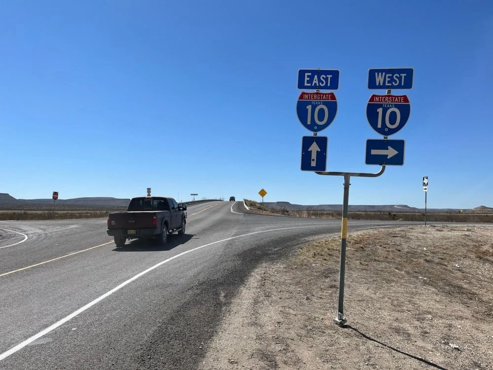 Pokračujeme dál. Krajina se postupně mění, z naprosté placky se stává placka, ze které trčí kopce. Projíždíme mezi kopci a konečně vidíme cíl naší jízdy - Guadalupské hory. Cesta přes Texas uběhla rychleji než jsme doufali, jsme v horách o den dřív. Fotíme se těsně předtím než se slunce schová za kopec a celá krajina upadne do stínu.