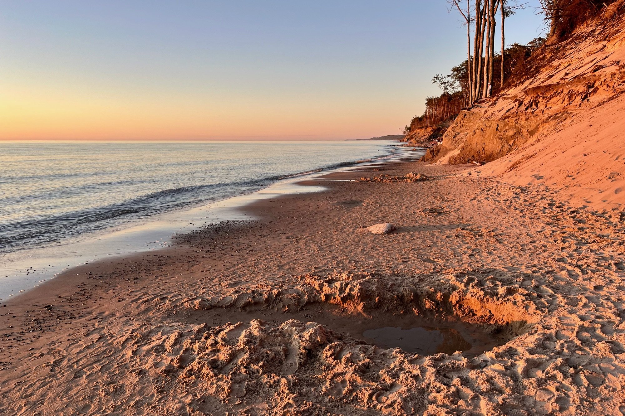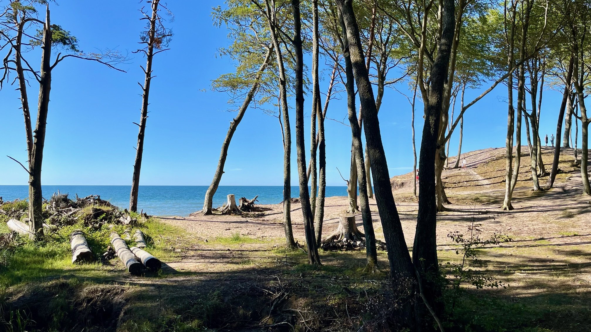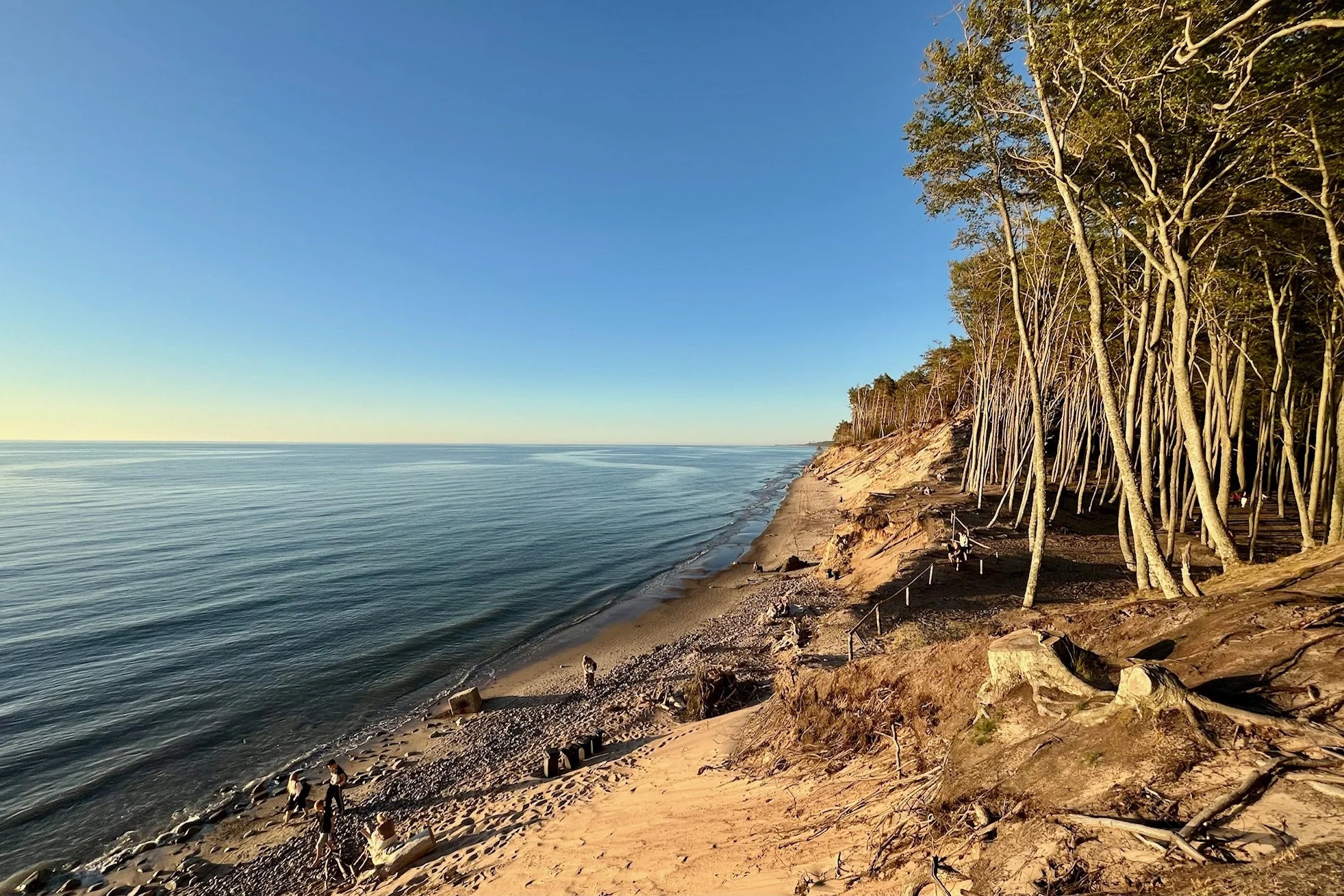 Jestli na mne při naší minulé cestě k Baltu silně zapůsobilo, byly to nádherné lesy, které toto moře lemují. Lesní porost sahá prakticky až k písečné pláži a působí přímo pohádkově – vzrostlé buky a borovice s podrostem menších stromků a jemných travin. Odpoledne slunce probleskuje korunami stromů a podtrhuje kouzelnou atmosféru.