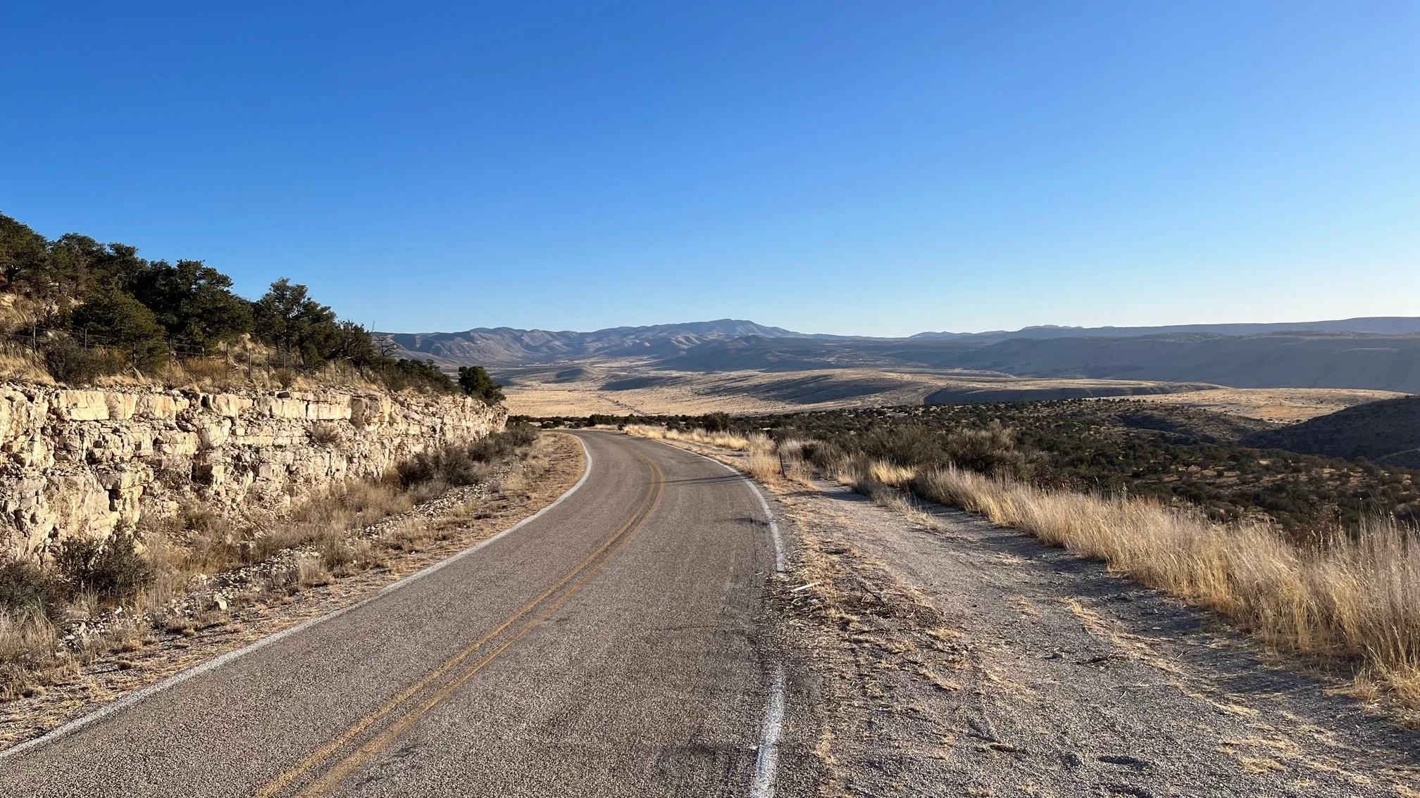 Na fotkách kemp vypadá nic moc. Vlastně mi jednu chvíli přijde zbytečné tam jezdit, když tam nemají sprchy, to můžeme spát jinde a zadarmo. Kemp je navíc děsně daleko. Vzdušnou čarou je to z parkoviště 8 kilometrů, ale protože je kemp na druhé straně hřebene Guadalupských hor, cesta autem trvá 2 hodiny. Je totiž potřeba celý hřeben objet kolem dokola.