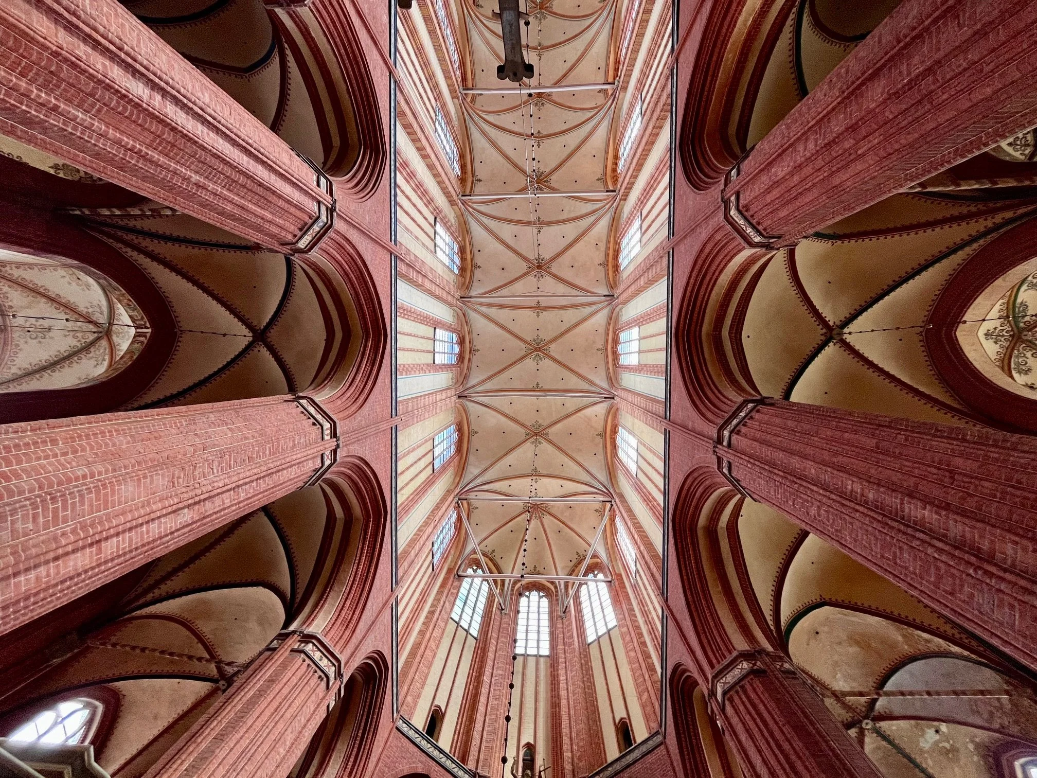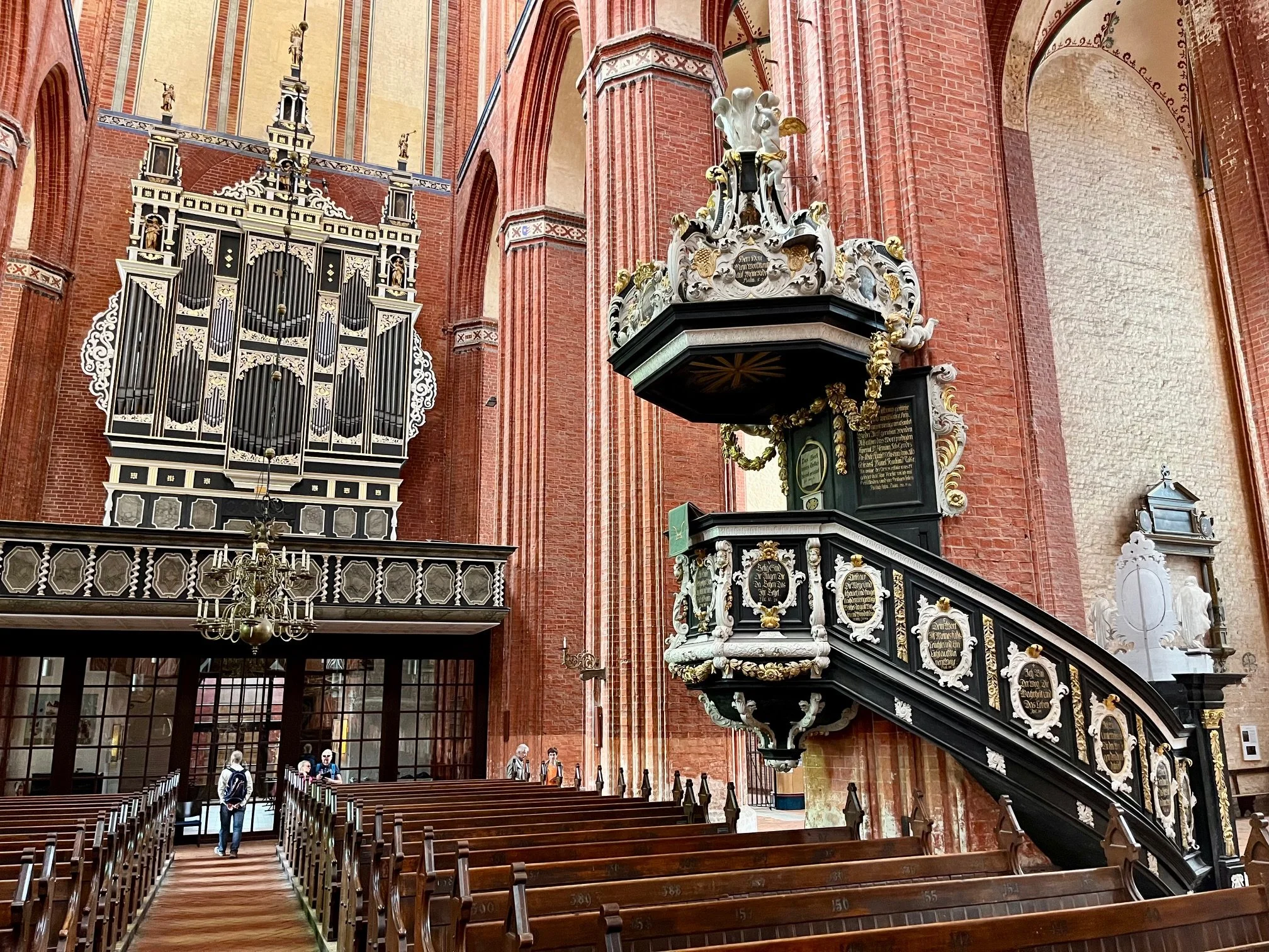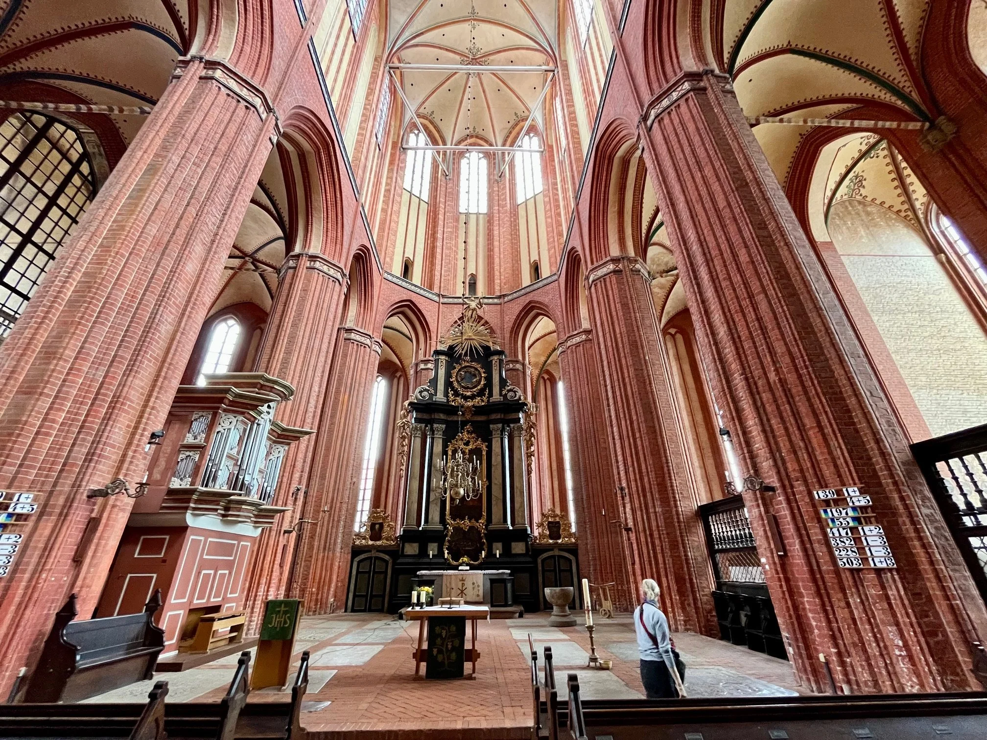 Ach ta cihlová gotika je neskutečná aneb interiér kostela Nikolaikirche ve Wismaru.