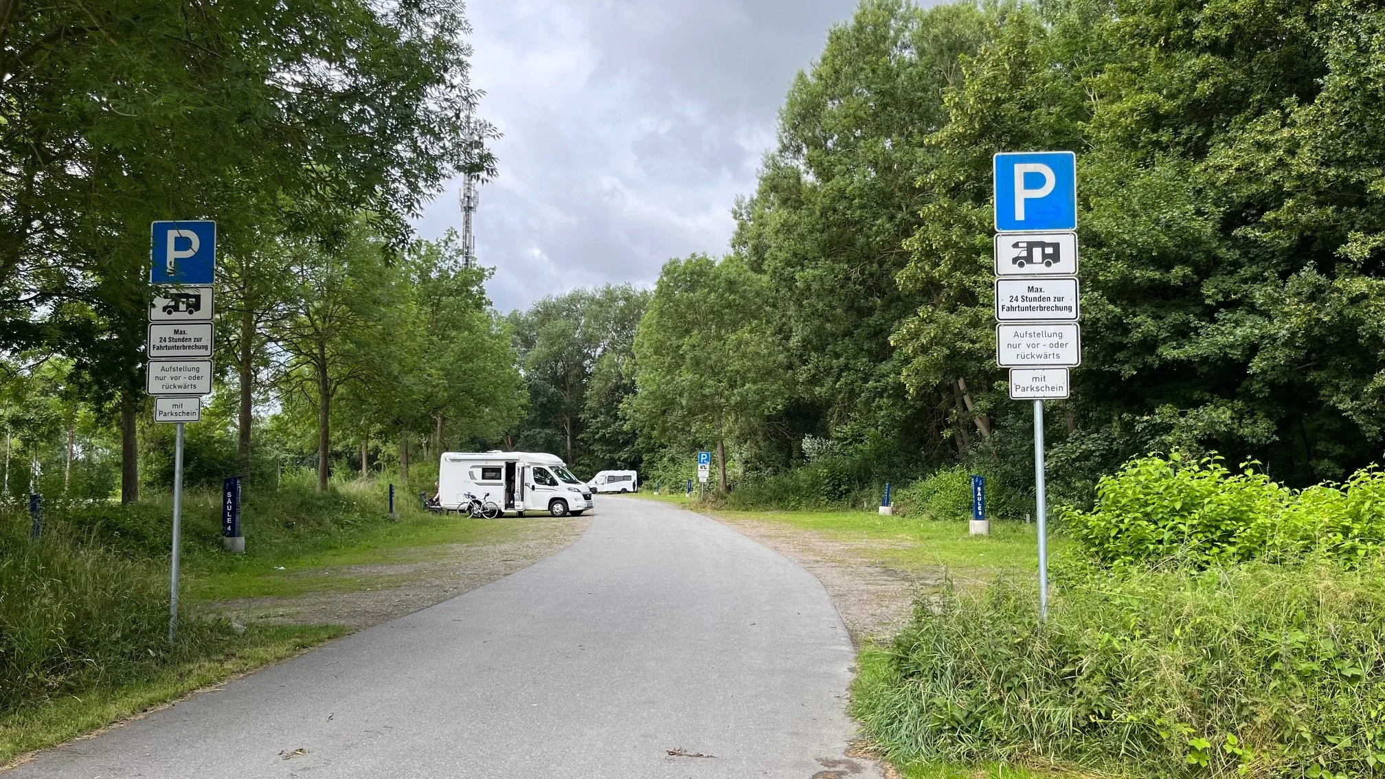 St 25.6.2025 placené parkoviště pro karavany, placené parkoviště pro obytná auta, Timmendoerfer Strand, Niendorf, kousek od Lübecku, P4N # 263315 (Německo) – km – parkoviště u venkovské restaurace, Rostock, P4N #467228 (Německo)