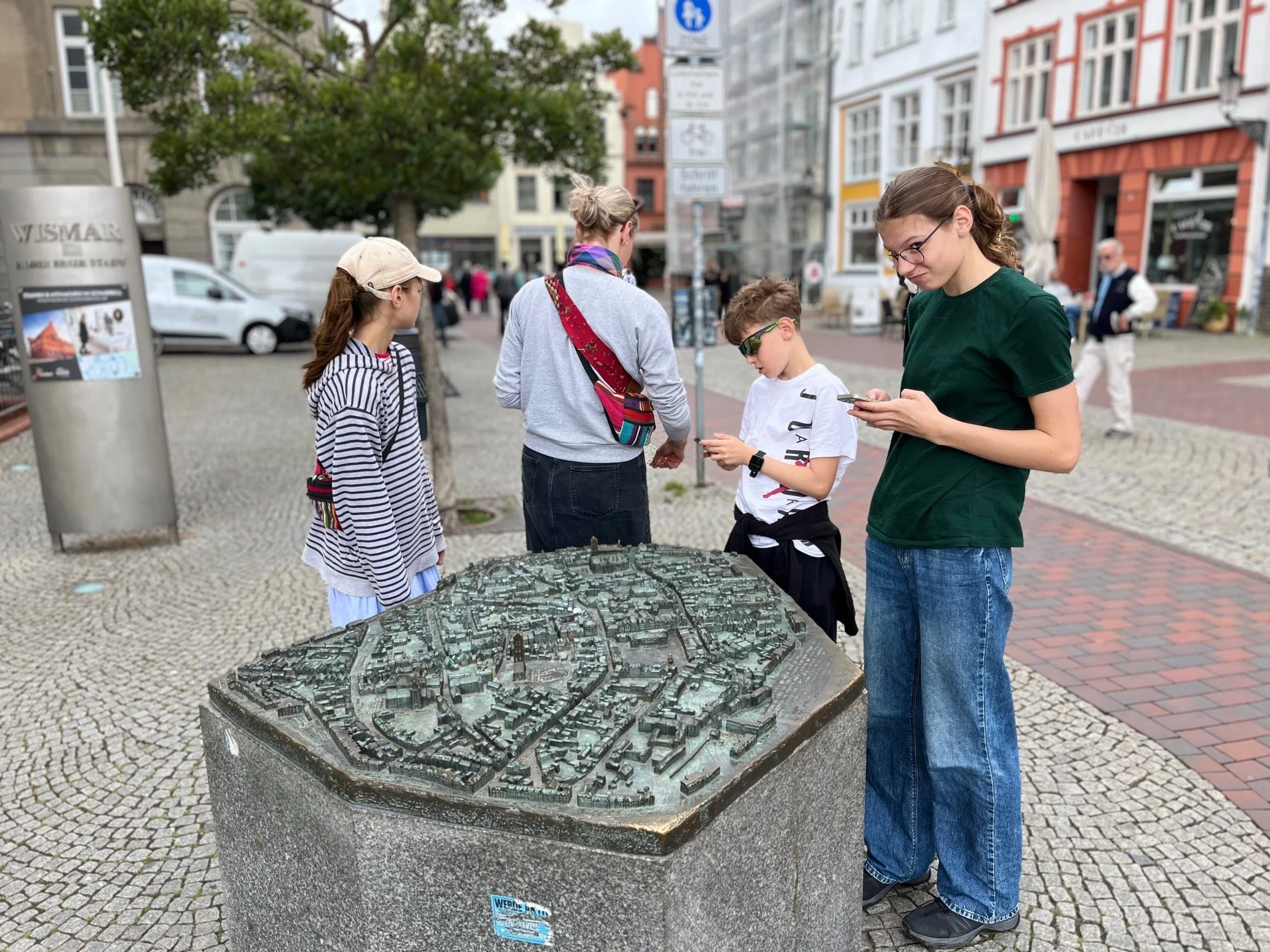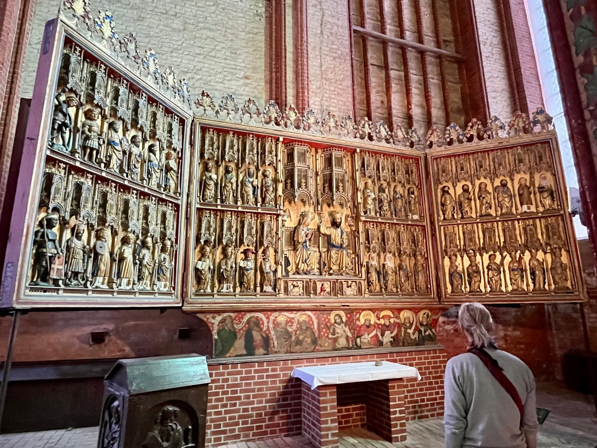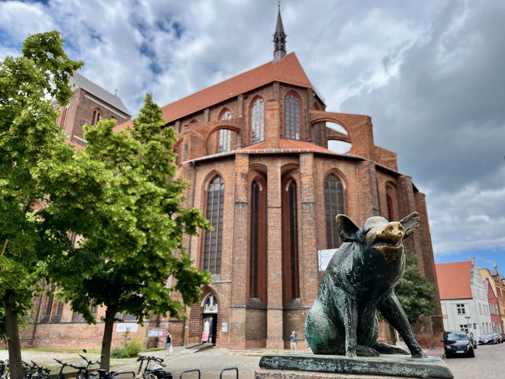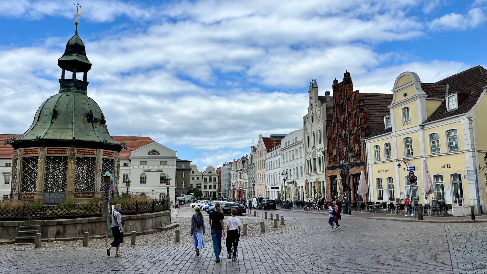 Odpoledne přejedeme do města Wismar, které leží v bývalém Východním Německu. Také toto město bylo za 2. světové války bombardováno, přičemž byly poškozeny dva ze tří gotických cihlových kostelů. Ani jeden z nich nebyl bohužel v socialistické éře opraven, natož znovu dostavěn, tak jako se dělo v Západním Německu. Naopak byly trosky ponechány svému osudu a kostelu Marienkirche byla dokonce zchátralá loď záměrně stržena. Když dnes procházíme kolem vidíme jen věž kostela a za ní oplocenou prázdnou parcelu.