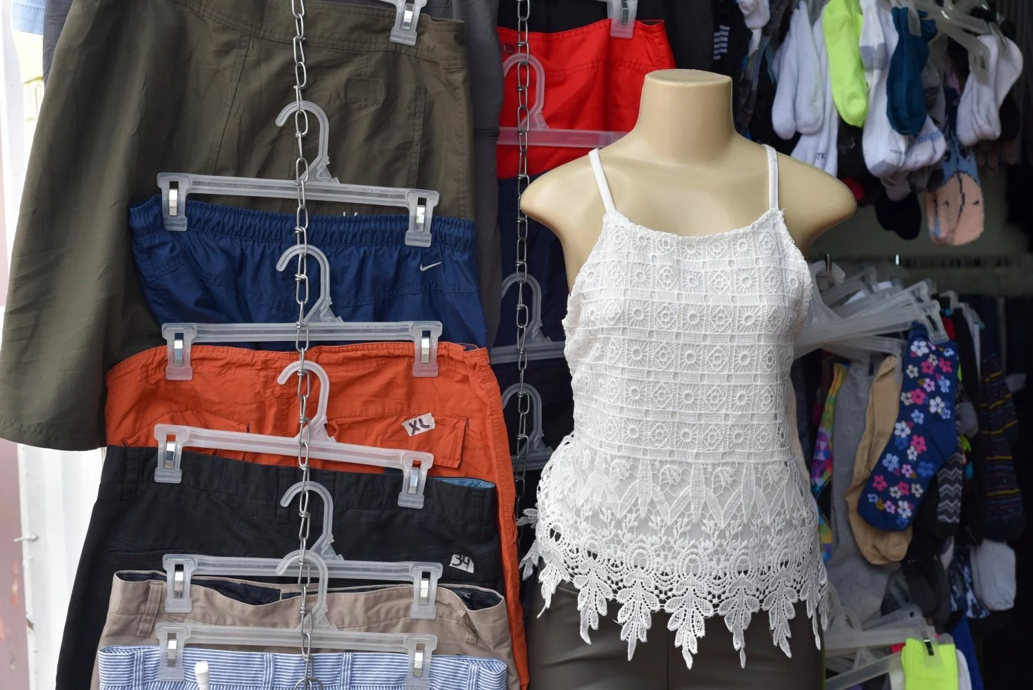 Necháme Janka vyřizovat tarif a děti odpočívat (nevím tedy od čeho) na kostce a my dvě s Týnou se jdeme podívat do dalších sekond-handů v okolí. Ona proto, že ráda nakupuje, já proto, že ty bílé pruhované šaty se už rozpadají a potřebuji nějakou náhradu. První sekáč je nic moc, ale v druhém mne zaujme kostkovaná halenka, která má cedulku s japonskými (tipuji) znaky. To jsem ještě nikdy nikde neviděla. Halenku nepotřebuji, ale najdu jedny vzdušné džínové šaty na ramínky a jedny dlouhé antracitové, jejichž spodní část je zauzlovaná, asi aby se délka neválela po zemi. Jdu si je vyzkoušet, Týna mezitím hledá něco pro sebe. Zkouším se ten antracitový kousek, ze kterého se vyklube overal se širokými nohavicemi. Přiznávám, že v oblékání jsem hodně nudná a konzervativní, už jen zkusit si overal je vystoupení z komfortní zóny, také vzhledem k tomu, že jsem hodně vysoká a podobné kusy oblečení mi obvykle proporčně nesedí. Ale overal je pravý opak – vlezu se do něj tak akorát, materiál je neskutečně příjemný, splývaný a chladivý, a barva i střih mi tady sluší, teda aspoň podle toho, co jsem schopná vidět v zrcadle, které mi sahá do krk. Naštěstí je asi 15 cm nad zrcadlem ještě jeden hřebík, nejspíš místo háčku, určený na pověšení odloženého oblečení. Převěsím na něj zrcadlo, které visí lehce na šikmo, což se projevuje zeštíhlujícím efektem. Radši se tedy ukazuji Týně, které se overal taky líbí. Ještě si zkouším šaty, docela to jde. Rozhoduji se, že si vezmu obojí. Týna si našla širokou řasenou sukni z Japonska. Je z ní dost nadšená. Až u poklady zjišťuju, že ty džínové šaty mají na sobě několik flíčků, které asi nepůjdou vyprat, a rozhoduju se je tam nechat. Platíme tedy asi 260 lempir (což je přesně 260 Kč) za ty dva kousky.
